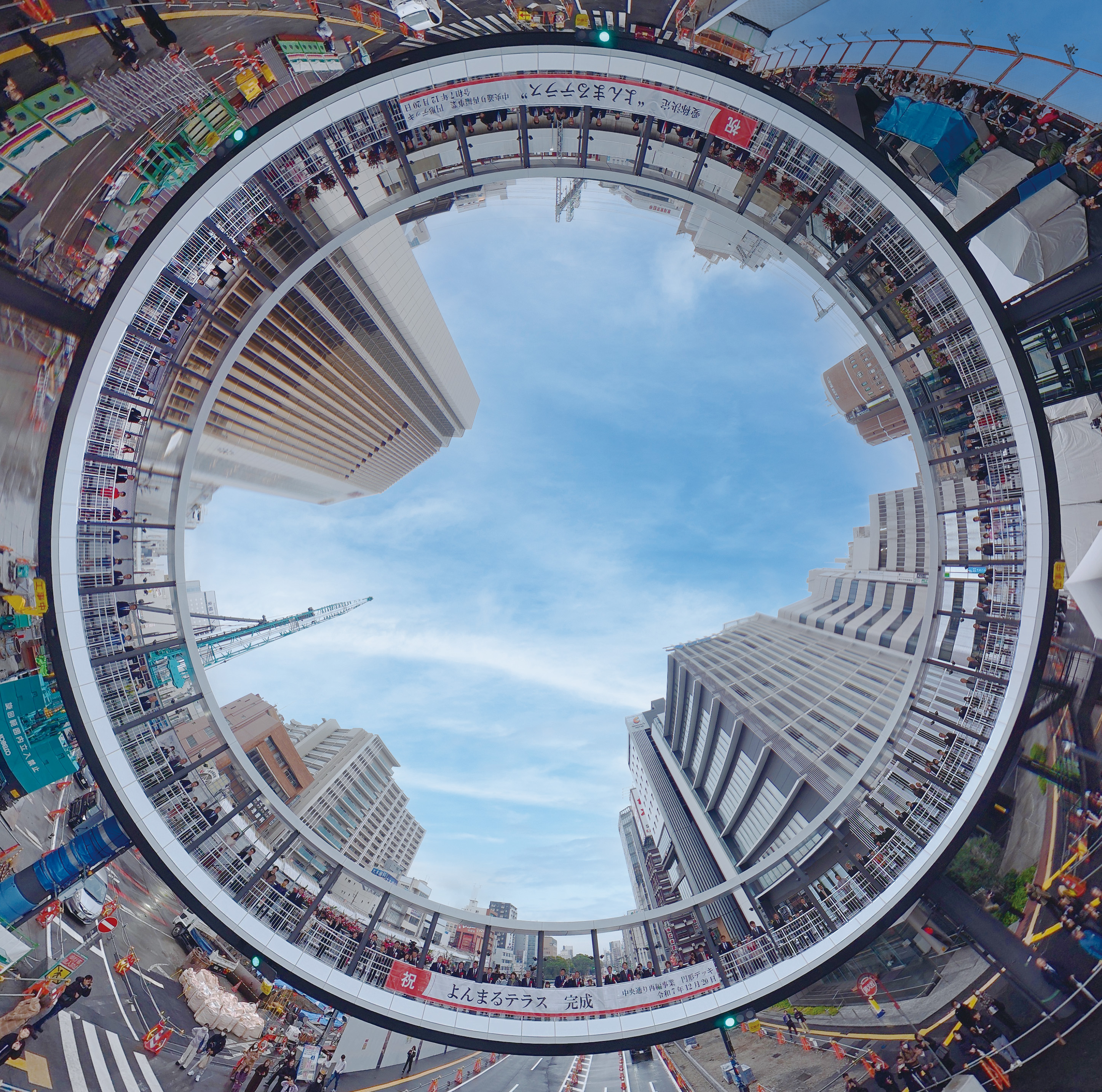 このうち、まちを眺める視点場や待ち合わせ場所としての機能をもつ円形デッキの工事が完成し、令和7年12月20日に供用いたしました。